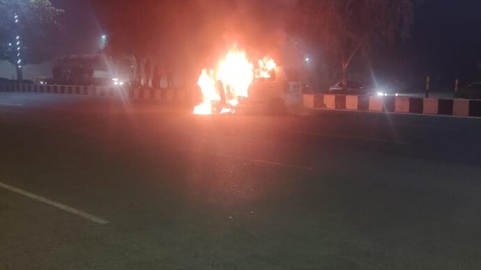 चलती कार में लग गई आग,बाल-बाल बचे लोग…..