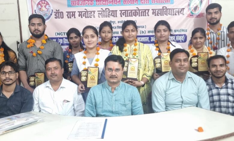 हरदोई । डाॅ.राम मनोहर लोहिया स्नातकोत्तर महाविद्यालय,अल्लीपुर, हरदोई के निदेशक डाॅ.शीर्षेन्दु शील ‘विपिन’ ने शनिवार को एक प्रेसवार्ता के दौरान बताया कि लगातार 10 सालों से बी.एड.के सभी विद्यार्थी प्रथम श्रेणी मे उत्तीर्ण होकर नया कीर्तिमान स्थापित किया है।