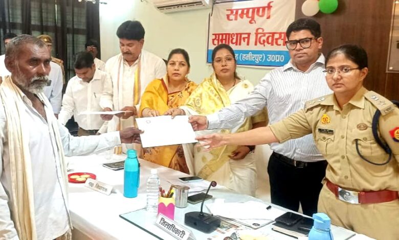 जन एक्सप्रेस/हमीरपुर: उत्तर प्रदेश सरकार की मंशा के मुताबिक जन समस्याओं और शिकायतों के दमदार और बेहतर तरीके से वख्त पर निस्तारण करने के लिये राठ में आयोजित सम्पूर्ण समाधान दिवस के मौके पर जिलाधिकारी घनश्याम मीना की सदारत जबकि पुलिस कप्तान डॉ दीक्षा शर्मा की मौजूदगी में लोगों की शिकायतें सुनीं गयीं। इस मौके पर जिला पंचायत अध्यक्ष जयंती राजपूत, जबकि विधायिका राठ मनीषा अनुरागी सहित नगर पालिका चेयरमैन श्रीनिवास बुधौलिया मौजूद रहे।