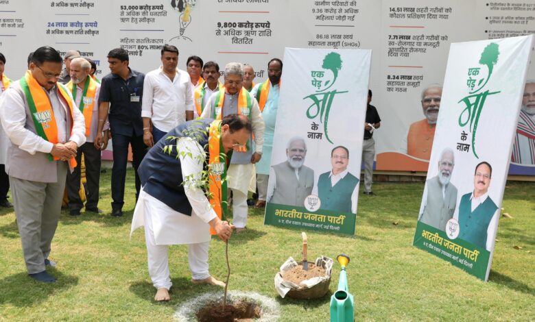 भाजपा अध्यक्ष नड्डा ने पार्टी मुख्यालय में लगाया पौधा