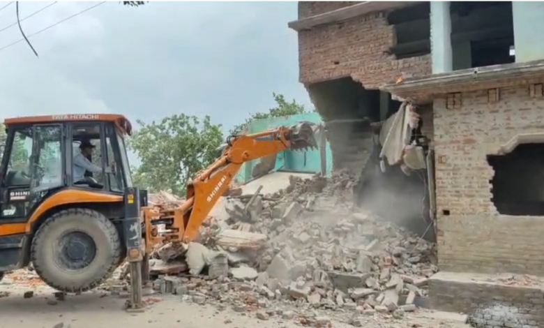महराजगंज में चला बुलडोजर, कोर्ट आदेश पर 9 अवैध मकान ध्वस्त