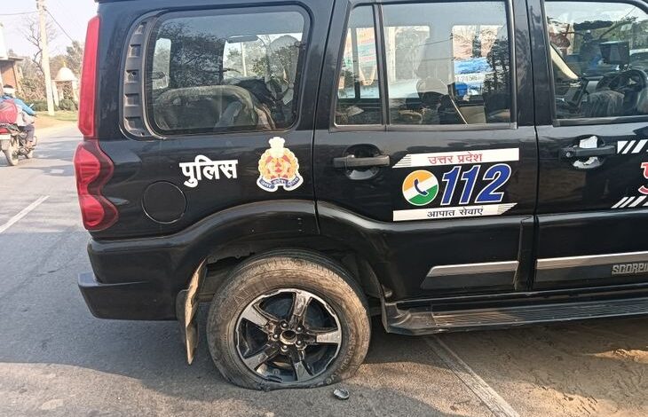 बुलेट सवार युवक को डायल112 की वाहन ने धक्का मारा,युवक घायल