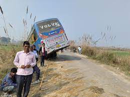औरैया: दिबियापुर कस्बे में गुंजन रोड पर श्रद्धालुओं से भरी बोल्वो बस कोहरे के कारण सड़क किनारे बंबा में जा गिरी। यात्रियों में चीख पुकार मच गई। यात्रियों ने खिड़कियों से कूदकर जान बचाई। आसपास के लोग आ गए और यात्रियों को सुरक्षित बाहर निकाला। क्रेन बुलाकर बस निकलवाई गई। करीब दो घंटे की मशक्कत में पुलिस मौके पर नही पहुंची थी।