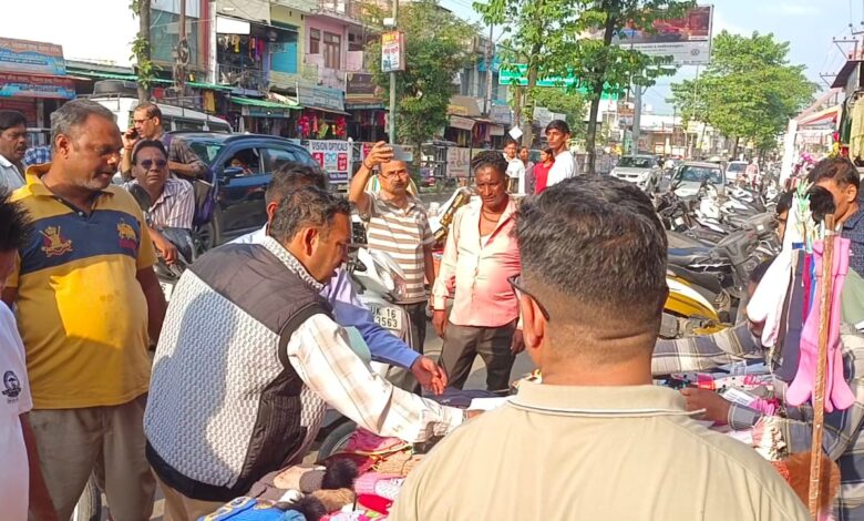 मुख्य बाजार में अनधिकृत ठेलों पर नगर पालिका की सख्ती, 2200 रुपये का जुर्माना वसूला