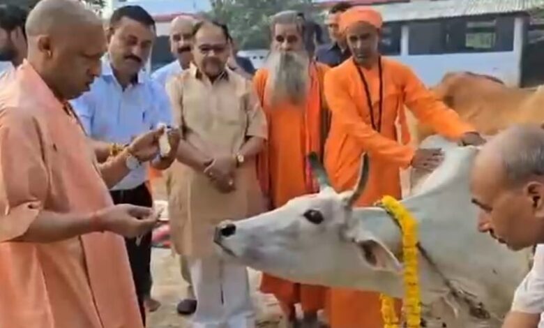 गोवर्धन पूजा पर CM योगी ने की गोसेवा, गोरखनाथ मंदिर में बच्चे का कराया अन्नप्राशन