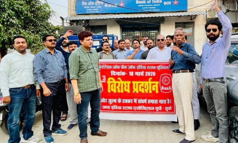 प्रदर्शन कर बैंककर्मियों ने दिया अल्टीमेटम, 30 मार्च को राष्ट्रव्यापी हड़ताल करेंगे