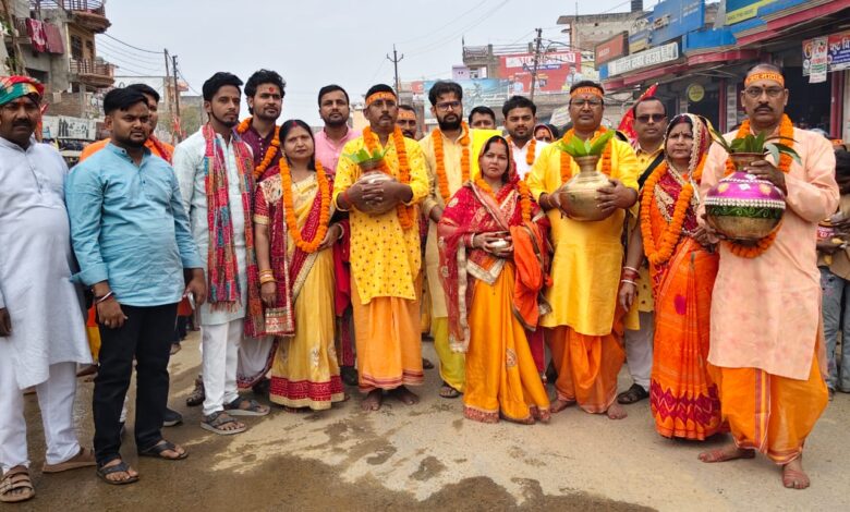 चैत्र नवरात्र के साथ महायज्ञ शुरु 501 कन्याओं व महिलाओं ने माथे पर लिया कलश, भक्तिमय हुआ कस्बा