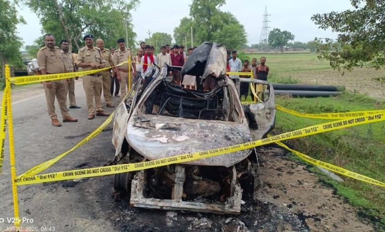 जली कार में मिली अधजली लाश से फैली सनसनी, चालक फरार |