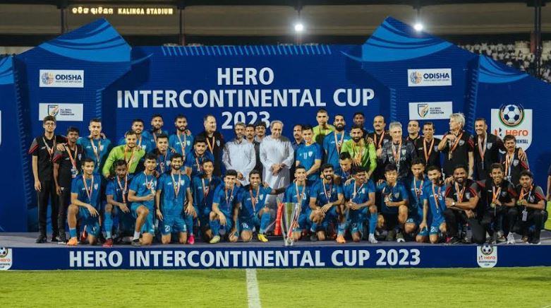 भुवनेश्वर । भारतीय फुटबॉल टीम ने रविवार रात भुवनेश्वर के कलिंगा स्टेडियम में कप्तान सुनील छेत्री और लालिंगजुआला छांगटे के गोलों की मदद से लेबनान को 2-0 से हराकर हीरो इंटरकॉन्टिनेंटल कप 2023 का खिताब जीत लिया है। ओडिशा के मुख्यमंत्री नवीन पटनायक ने भारतीय टीम को प्रतिष्ठित ट्रॉफी सौंपी। मुख्यमंत्री ने साथ ही भारतीय टीम को एक करोड़ रुपये देने की घोषणा की।