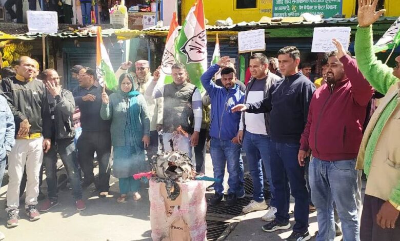 गोपेश्वर । कांग्रेस की ओर से बुधवार को प्रदेश में शराब को सस्ते किये जाने के सरकार के फैसले के विरोध में चमोली जिला मुख्यालय गोपेश्वर में प्रदर्शन कर तिराहे पर सरकार का पुतला दहन कर फैसले को वापस लेने की मांग की है।