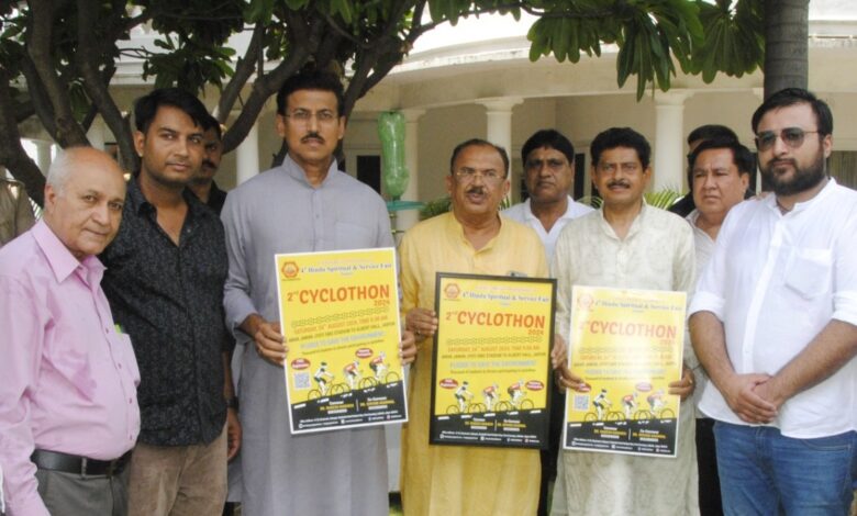 जयपुर । राजस्थान विधानसभा अध्यक्ष वासुदेव देवनानी ने पर्यावरण संरक्षण के लिए आयोजित होने वाली साइकिल रैली “साइक्लोथॉन” का पोस्टर जारी किया। उद्योग मंत्री राज्यवर्धन सिंह और विधायक गोपाल शर्मा की मौजूदगी में देवनानी के मुख्य आतिथ्य में आयोजित पोस्टर विमोचन कार्यक्रम में चौथे हिन्दू आध्यात्मक एवं सेवा मेला जयपुर के प्रतिनिधि शामिल थे।