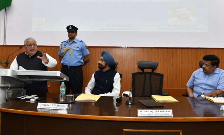 राज्यपाल मिश्र सोमवार को माउंट आबू स्थित आंतरिक सुरक्षा अकादमी कॉन्फ्रेंस हॉल में सुदृढ़ लोकतंत्र में राज्य चुनाव आयोगों की भूमिका विषयक सम्मेलन में सम्बोधित कर रहे थे।