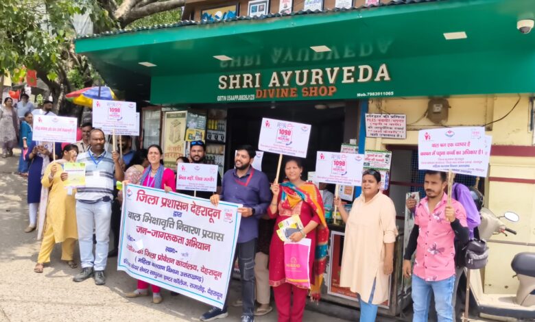 जन एक्सप्रेस देहरादून: जिलाधिकारी सविन बंसल के निर्देशन में जिला बाल संरक्षण इकाई, चाइल्ड हेल्पलाइन 1098, आसरा ट्रस्ट, एवं एंटी ह्यूमन ट्रैफिकिंग यूनिट (AHTU) के संयुक्त तत्वावधान में आज ऋषिकेश के भिक्षावृत्ति बाहुल्य क्षेत्रों — गरुड़ चट्टी पुल, लक्ष्मण झूला पुल, त्रिवेणी घाट, और इंद्रमणि चौक — में भिक्षावृत्ति एवं बालश्रम उन्मूलन हेतु जन जागरूकता अभियान चलाया गया।