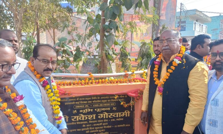 जन एक्सप्रेस/महोबा: शहर के ‘विकास की रफ्तार’ अब बाईपास के मोड़ पर एक नया मोड़ लेने जा रही है। सदर विधायक राकेश गोस्वामी ने परमानंद चौक से झलकारीबाई तिराहे फोर लेन सड़क निर्माण का भूमिपूजन व शिलान्यास किया। सदर विधायक राकेश गोस्वामी ने पूरी कर दी महोबा.. जनपद वासियों की आस परमानंद चौक से झलकारीबाई तिराहे तक फोर लेन सड़क निर्माण हेतु भूमिपूजन – छाई खुशी। तेरह करोड़ पैतीस लाख अठठानबे हजार रुपये) रुपये की लागत से होगा सड़क निर्माण एवं चौड़ीकरण विधायक राकेश गोस्वामी ने परमानंद चौक से झलकारीबाई तिराहे फोर लेन सड़क निर्माण का भूमिपूजन व शिलान्यास किया।