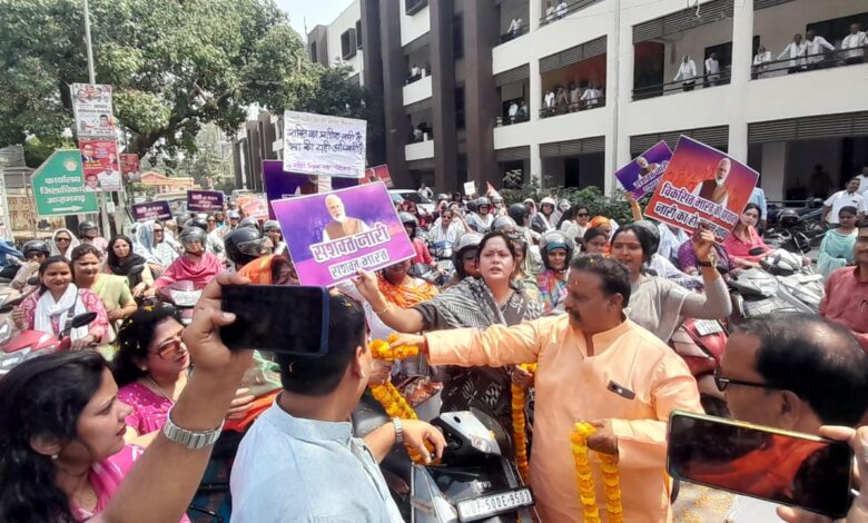 जन एक्सप्रेस/ आजमगढ़: केंद्र सरकार द्वारा ‘नारी शक्ति वंदन अधिनियम’ लागू किए जाने से उत्साहित महिलाओं ने जनपद में अपनी शक्ति का प्रदर्शन किया। जिला उपाध्यक्ष विभा बरनवाल के संयोजन में भारी संख्या में महिलाओं ने कुंवर सिंह उद्यान में एकत्र होकर पदयात्रा और बाइक/स्कूटी रैली के माध्यम से प्रधानमंत्री नरेंद्र मोदी का आभार व्यक्त किया।