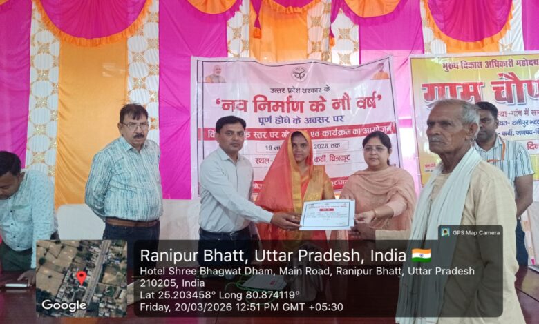 जन एक्सप्रेस)चित्रकूट।‘नवनिर्माण के नौ वर्ष’ पूर्ण होने के गौरवशाली अवसर पर 19 मार्च 2026 को विकास खंड कर्वी तथा 20 मार्च 2026 को ग्राम पंचायत रानीपुरभट्ट में भव्य कार्यक्रमों का आयोजन किया गया। जनपद के विभिन्न ब्लॉकों और तहसीलों में चल रही कार्यक्रमों की श्रृंखला के अंतर्गत विकास खंड कर्वी में आयोजित मुख्य कार्यक्रम की अध्यक्षता खंड विकास अधिकारी महिमा विद्यार्थी द्वारा की गई।कार्यक्रम के अंतर्गत किसान गोष्ठी का आयोजन किया गया, जिसमें कृषि एवं कृषक कल्याण पर विशेष जोर दिया गया। गोष्ठी में उपस्थित किसानों को आधुनिक कृषि पद्धतियों, उन्नत बीज, सिंचाई प्रबंधन तथा सरकार की लाभकारी योजनाओं के बारे में विस्तार से जानकारी दी गई और अधिक से अधिक योजनाओं का लाभ लेने के लिए प्रेरित किया गया।इस दौरान पारदर्शी चयन प्रक्रिया के तहत प्रधानमंत्री आवास योजना (ग्रामीण) एवं मुख्यमंत्री आवास योजना के पात्र लाभार्थियों को आवास स्वीकृति एवं अधिकार पत्र वितरित किए गए। लाभार्थियों ने सरकार की योजनाओं के लिए आभार व्यक्त किया और कहा कि इससे उनके पक्के घर का सपना पूरा होगा।खंड विकास अधिकारी ने पिछले नौ वर्षों में क्षेत्र में हुए बुनियादी ढांचे के विकास, सड़क, आवास, पेयजल, स्वच्छता और जन-कल्याणकारी योजनाओं के सफल क्रियान्वयन पर प्रकाश डालते हुए कहा कि सरकार की मंशा है कि योजनाओं का लाभ अंतिम व्यक्ति तक पहुंचे।कार्यक्रम में ग्राम प्रधान, पंचायत सहायक, प्रगतिशील किसान, विकास खंड के समस्त कार्यालय स्टाफ तथा स्थानीय नागरिक बड़ी संख्या में उपस्थित रहे।समापन अवसर पर खंड विकास अधिकारी ने सभी अधिकारियों और कर्मचारियों से योजनाओं को पारदर्शिता के साथ लागू करने और अंतिम पायदान पर खड़े व्यक्ति तक लाभ पहुंचाने की प्रतिबद्धता