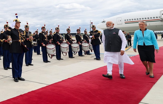 पेरिस । भारत के प्रधानमंत्री नरेन्द्र मोदी दो दिवसीय फ्रांस दौरे के लिए गुरुवार को पेरिस पहुंचे। फ्रांसीसी प्रधानमंत्री एलिजाबेथ बोर्न ने भारतीय प्रधानमंत्री की समारोह पूर्वक अगवानी की। भारतीय प्रधानमंत्री फ्रांस के वार्षिक उत्सव बैस्टिल डे परेड में मुख्य अतिथि के रूप में शामिल होंगे।