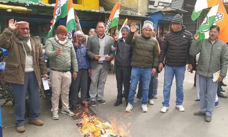 गोपेश्वर । कांग्रेस पार्टी चमोली ने भाजपा सरकार पर आरोप लगाते हुए पार्टी के महानगर रूद्रपुर अध्यक्ष पीसी शर्मा पर भाजपा सरकार के इशारे पर जानलेवा हमले की निंदा करते हुए सोमवार को चमोली जिला मुख्यालय गोपेश्वर के तिराहे पर राज्य सरकार का पुतला दहन किया।