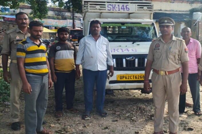 जौनपुर कोतवाली पुलिस ने 4 आरोपियों को 20 पशुओं संग किया गिरफ्तार, पिकअप वाहन सीज