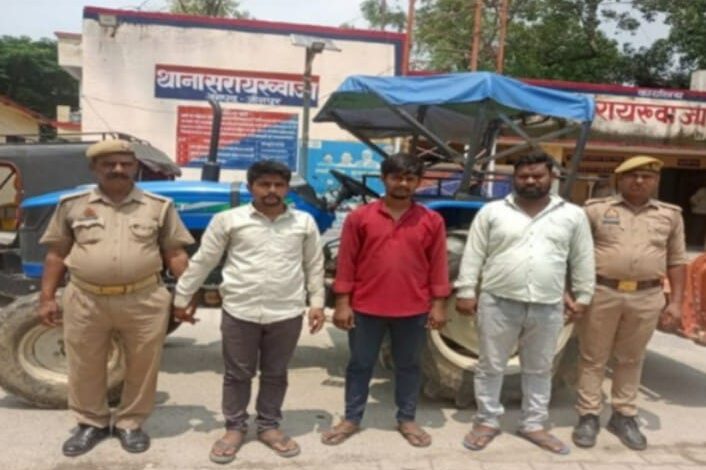 जन एक्सप्रेस / जौनपुर : जौनपुर प्रभारी निरीक्षक सरायख्वाजा के कुशल नेतृत्व में थाना सरायख्वाजा पुलिस टीम दिनांक 29/08/2025 को थाना सरायख्वाजा पर पंजीकृत मु0अ0सं0-504/25 धारा 303(2) B.N.S से सम्बन्धित वांछित अभियुक्तों को मुखबीर खास की सूचना पर शिकारपुर रोड से मय रोटावेटर के साथ गिरफ्तार किया गया, जिनका नाम 1. जीतेन्द्र उर्फ वीरू यादव पुत्र राजनाथ यादव निवासी पतहना थाना सरायख्वाजा जनपद जौनपुर 2. आकाश यादव पुत्र स्व0 पवन कुमार ग्राम पतहना थाना सरायख्वाजा जनपद जौनपुर 3. लालु यादव पुत्र मनोज यादव निवासी जलालपुर थाना सरायख्वाजा जौनपुर है, उपरोक्त अभियुक्तगणो से सख्ती से पूछताछ करने पर एक स्वर मे बताये कि साहब हम लोग इसी ट्रैक्टर से दि0 23/8/25 को रोटावेटर पतहना ग्राम से चोरी किये थे जिसे आज हम लोग खुटहन बेचने के लिए जा रहे थे, अभियुक्तगण को गिरफ्तार कर आवश्यक विधिक कार्यवाही की जा रही है