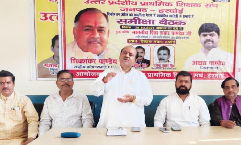 जन एक्सप्रेस/ हरदोई : उत्तर प्रदेशीय प्राथमिक शिक्षक संघ जनपद हरदोई की जिला कार्यसमिति और संघर्ष समिति की एक महत्वपूर्ण बैठक रविवार को ‘शिक्षक भवन’ के सभागार में संपन्न हुई। टीचर्स फेडरेशन ऑफ इंडिया के राष्ट्रीय कोषाध्यक्ष शिव शंकर पांडेय की अध्यक्षता में हुई इस बैठक में 4 अप्रैल 2026 को दिल्ली के रामलीला मैदान में होने वाली महारैली को ऐतिहासिक बनाने का संकल्प लिया गया।