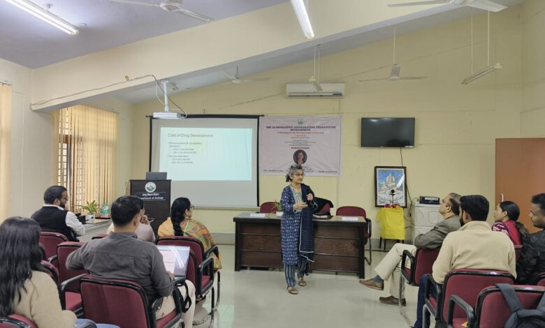 कार्यशाला की मुख्य वक्ता प्रोफेसर रीना घिल्डियाल, प्रोफेसर एमेरिटा, यूनिवर्सिटी ऑफ कैनबरा, ऑस्ट्रेलिया रहीं। उन्होंने “द एआई इम्पेरेटिव: एक्सेलरेटिंग थेरेप्यूटिक डेवलपमेंट” विषय पर एक अत्यंत ज्ञानवर्धक और विचारोत्तेजक व्याख्यान प्रस्तुत किया। उन्होंने छात्रों एवं शोधार्थियों को बताया कि किस प्रकार कृत्रिम बुद्धिमत्ता दवा लक्ष्य की पहचान एवं प्रमाणीकरण के साथ ही प्री-क्लिनिकल ट्रायल्स के डिज़ाइन और प्रबंधन में सहायक सिद्ध हो सकती है। प्रो. घिल्डियाल ने हैंड्स-ऑन सत्र का भी संचालन किया, जिसमें प्रतिभागियों को एआई आधारित संगणनात्मक बुद्धिमत्ता के प्रयोग से चिकित्सीय विकास और अनुवादात्मक परिणामों में तेजी लाने के व्यावहारिक उपायों से अवगत कराया गया।
