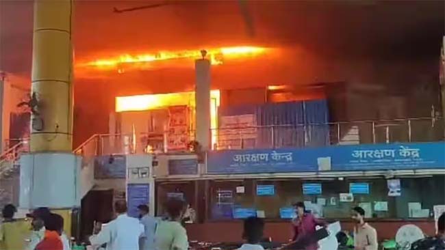 लोकमान्य तिलक टर्मिनस स्टेशन पर आग लगने से यात्रियों में मची अफरा-तफरी