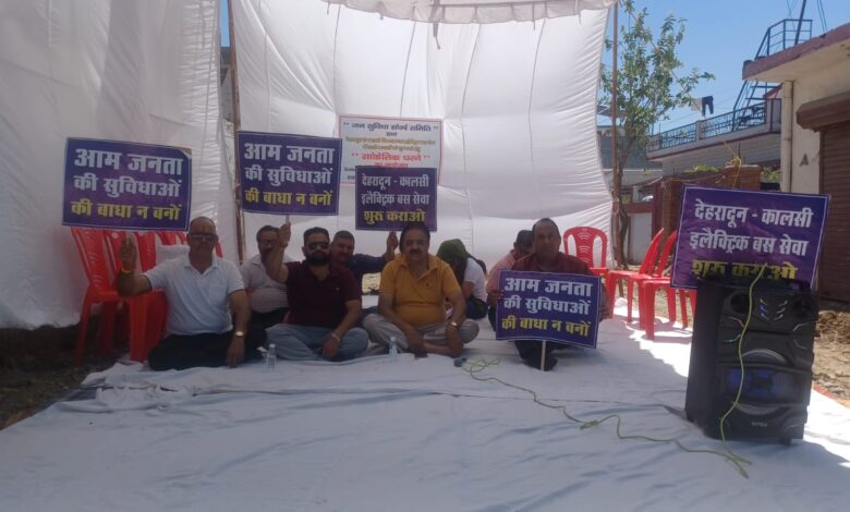 धरने को संबोधित करते हुए संयोजक अरविंद शर्मा ने कहा कि देहरादून से कालसी मार्ग पर इलेक्ट्रिक बस का सफल ट्रायल हो चुका है, लेकिन इसके बावजूद बसों का संचालन शुरू नहीं किया गया है।