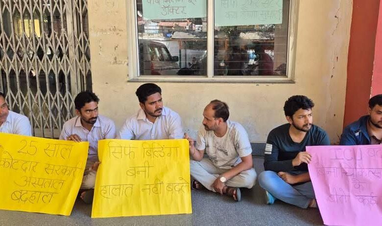 जन एक्सप्रेस/कोटद्वार: कोटद्वार बेस अस्पताल मे वर्तमान मे कई पद खाली चल रहे है जिसके चलते मरीजों को खासा परेशानी का सामना करना पड़ता है, इसी को देखते हुए आज कोटद्वार के युवाओं नें बेस अस्पताल कोटद्वार के परिसर मे धरना प्रदर्शन करते हुए स्थानीय विधायक ऋतू खंडूरी के खिलाफ जमकर नारे बाज़ी भी की। धरने पर बैठे राम कंडवाल नें कहा कि अस्पताल की बिल्डिंग तो बहुमजिला बना दी गई है।