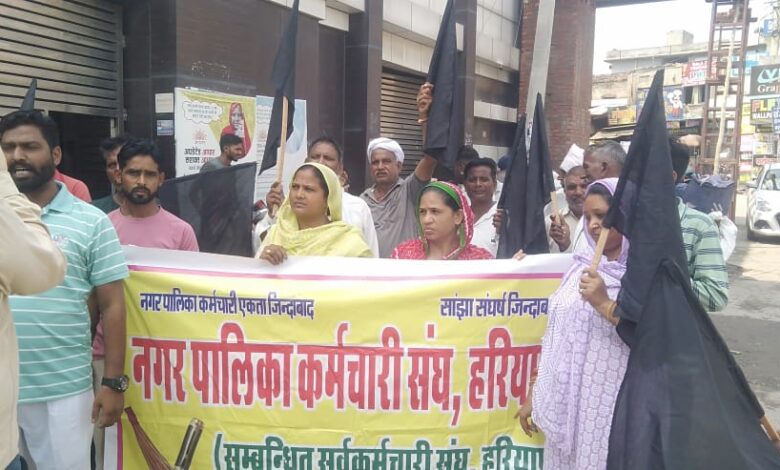 कैथल । सरकार की वादा खिलाफी के विरोध में बुधवार को नगर परिषद के सफाई कर्मचारियों ने अपनी मांगों को लेकर उल्टी झाड़ू के शहर में प्रदर्शन किया। सफाई कर्मचारियों ने अपनी मांगे न पूरी करने पर काला बिल्ला लगाकर विरोध जताया।