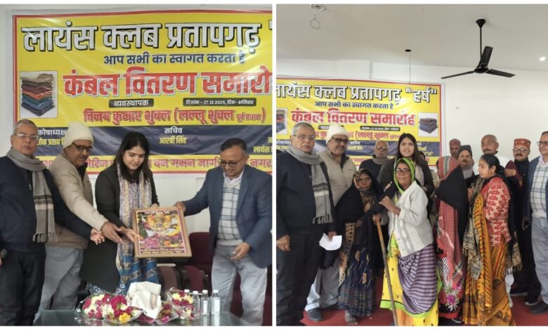 जन एक्सप्रेस प्रतापगढ़:जिले में शनिवार को लायंस क्लब प्रतापगढ़ हर्ष द्वारा मोहनगंज जेठवारा मार्ग पर देव मैरिज लान पड़वासी में कंबल वितरण समारोह का आयोजन पूर्व प्रधान विनय कुमार शुक्ला के सहयोग से आयोजित किया गया। कंबल वितरण का शुभारंभ एसडीएम सदर नैंसी सिंह द्वारा मुख्य अतिथि के रूप में किया गया। कंबल वितरण के अवसर पर ग्रामीणों को संबोधित करते हुए एसडीएम नैंसी सिंह ने कहा कि शीतलहर तथा ठंड से बचाए हेतु निर्बल वर्ग तथा जरूरतमंदों को कंबल का वितरण सबसे बड़ा पुनीत कार्य है। उन्होंने कहा कि प्रशासन द्वारा भी जरूरतमंदों को कंबल का वितरण किया जा रहा है ऐसे पुनीत कार्य में प्रशासन को सहयोग करने में समाज सेवी संस्थाओं का सहयोग अपेक्षित है। लायंस क्लब प्रतापगढ़ हर्ष द्वारा जरूरतमंद को कंबल वितरण करने के लिए लायंस क्लब के पदाधिकारियों तथा आयोजकों की एसडीएम ने सराहना की। इस दौरान पांच सौ से अधिक लोगों को कंबल वितरण किया गया।