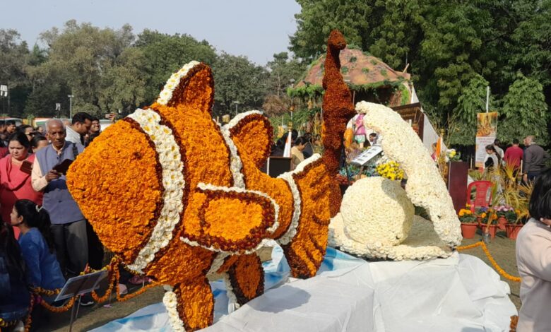प्राकृतिक सामग्री से बनी पुष्प कला रही आकर्षण का केंद्र