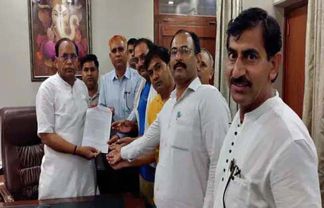 अध्यापकों ने मंत्री बनवारी लाल से मुलाकात कर सौंपा मांग पत्र