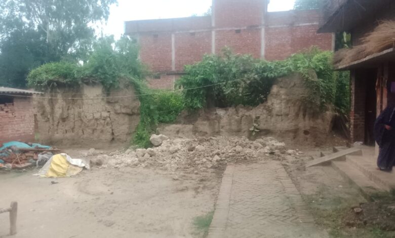 जैसे ही अंशु यादव दीवार के बगल से होकर गुजर रहा था दीवार के एक भाग का मलबा उसके उपर भरभराकर गिर गया