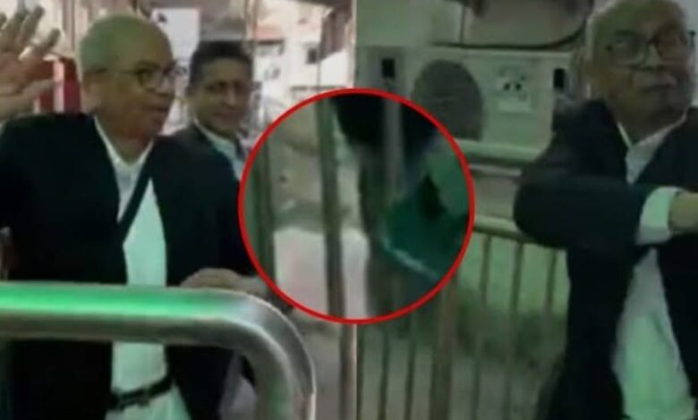 वीडियो में दिखाई देता है कि कोर्ट परिसर के बाहर एक वकील अचानक किशोर पर चप्पल से प्रहार करता है। पहले किशोर ने पूछा—“क्या गलती की है मैंने?”लेकिन हमला बढ़ते ही उन्होंने ऊँची आवाज में नारे लगाने शुरू कर दिए। आसपास मौजूद वकीलों और लोगों ने बीच-बचाव की कोशिश की। इसके बाद कोर्ट सुरक्षा टीम ने हस्तक्षेप कर किशोर को सुरक्षित बाहर निकाला।