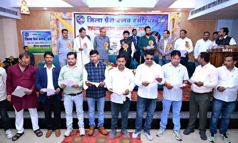 जन एक्सप्रेस/हमीरपुर: जिला प्रैस क्लब का शपथ ग्रहण समारोह हुआ सम्पन। शपथ ग्रहण समारोह में बतौर मुख्य अतिथि शिरकत करते हुये उत्तर प्रदेश सरकार के कैबनेट मंत्री नंदगोपाल नंदी ने कहा कि पत्रकारों की कलम सिर्फ सच को उजागर नहीं करती, बल्कि समाज की दिशा तय करती है। पत्रकार सिर्फ समाज का दर्पण नहीं बल्कि मार्गदर्शक भी है।