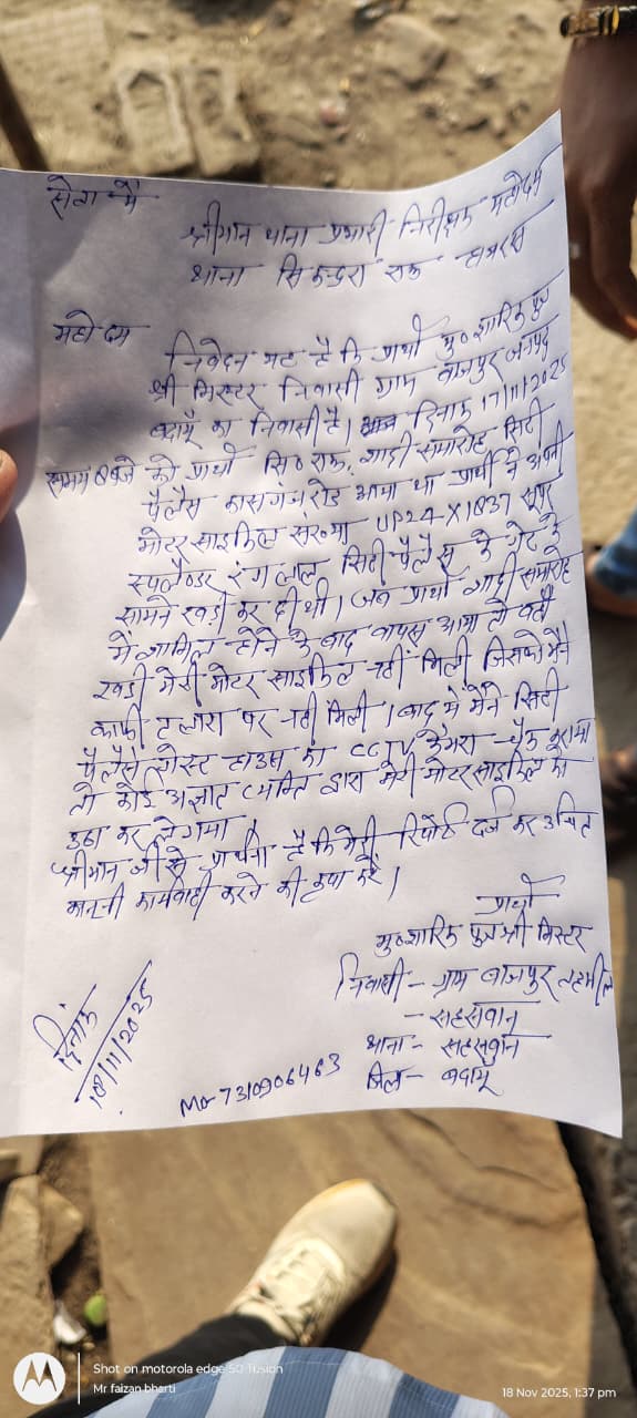 फुटेज में आरोपी बाइक स्टार्ट कर घटनास्थल से भागते हुए दिखाई दे रहा है।घटना के बाद पीड़ित शारीक ने मंगलवार दोपहर करीब 1 बजे सिकंद्राराऊ थाने पहुंचकर तहरीर दी और कार्रवाई की मांग की। पुलिस ने मामला दर्ज कर लिया है और सीसीटीवी फुटेज के आधार पर आरोपी चोर की तलाश शुरू कर दी है। पुलिस टीम के अनुसार जल्द ही चोर की पहचान कर उसे गिरफ्तार किया जाएगा।