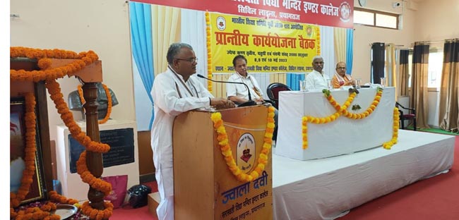 प्रयागराज । भारत तीन वर्णो से मिलकर बना है भाव, राग एवं ताल इन तीनों का समन्वय स्पष्ट रूप से दिखाई देना चाहिए तथा इनके समन्वय को बनाए रखने की जिम्मेदारी हम सभी की है। हम सभी सामाजिक जीवन में रहने वाले सक्रिय कार्यकर्ता हैं और अपने विद्यालय में शिक्षा के माध्यम से संस्कार एवं चरित्र द्वारा राष्ट्र निर्माण में सहभागिता कर रहे हैं। अपने देश को दिव्य भव्य बनाने की जिम्मेदारी जो हम लोगों की है उसे पूर्ण करने का कार्य कर रहे हैं।