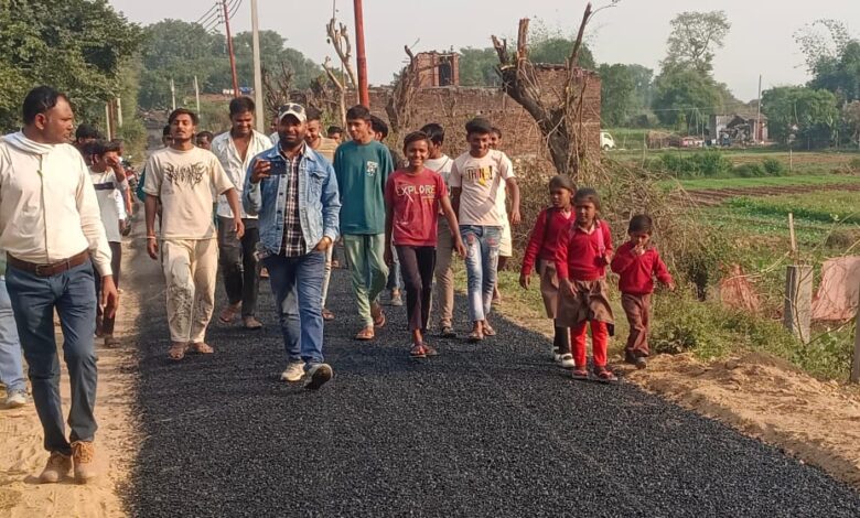 गोबरिया में घटिया सड़क निर्माण पर ग्रामीणों का हंगामा